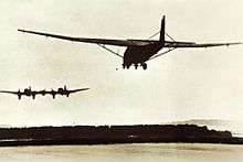 The first prototype, He 111 V1 (W.Nr. 713, D-ADAP), first flew from Rostock-Marienehe on 24 February 1935.[17] It was followed by the civilian-equipped V2 and V4 in May 1935. The V2 (W.Nr. 715, D-ALIX) used the bomb bay as a four-seat "smoking compartment", with another six seats behind it in the rear fuselage. V2 entered service with Deutsche Luft Hansa in 1936, along with six other newly built versions known as the He 111C.[18] The He 111 V4 was unveiled to the foreign press on 10 January 1936.[18] Nazi propaganda inflated the performance of the He 111C, announcing its maximum speed as 400 km/h (249 mph), in reality its performance standing at 360 km/h (224 mph).[19] The He 111 C-0 was a commercial version and took the form of the V4 prototype design. The first machine, designated D-AHAO "Dresden". It was powered by the BMW VI engine and could manage a range (depending on the fuel capacity) of 1,000 km (621 mi) to 2,200 km (1,367 mi)[19] and a maximum speed of 310 km/h (193 mph).[20] The wing span on the C series was 22.6 m (74 ft 1¾in).[20] The fuselage dimensions stood at 17.1 m (56 ft 1¾in) in the He 111 V1, but changed in the C to 17.5 m (57 ft 5 in). The Jumo 205 diesel-type powerplant engine replaced the BMW VI. Nevertheless, the maximum speed remained in the 220–240 km/h (137–149 mph) bracket. This was increased slightly when the BMW 132 engines were introduced.[20]