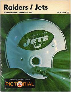 ![]() Program cover from the Jets-Raiders game from November 17, 1968 | |||||||||||||||||||