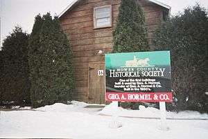 The building in which George A. Hormel started his business. Preserved at the Mower County Fairgrounds in Austin.