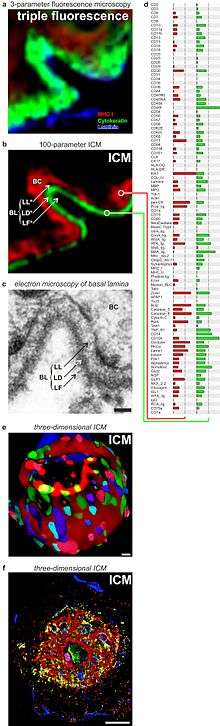 - ↑ Gerdes, M. J.; Sevinsky, C. J.; Sood, A.; Adak, S.; Bello, M. O.; Bordwell, A.; Can, A.; Corwin, A.; Dinn, S.; Filkins, R. J.; Hollman, D.; Kamath, V.; Kaanumalle, S.; Kenny, K.; Larsen, M.; Lazare, M.; Li, Q.; Lowes, C.; McCulloch, C. C.; McDonough, E.; Montalto, M. C.; Pang, Z.; Rittscher, J.; Santamaria-Pang, A.; Sarachan, B. D.; Seel, M. L.; Seppo, A.; Shaikh, K.; Sui, Y.; Zhang, J.; Ginty, F. (1 July 2013). "Highly multiplexed single-cell analysis of formalin-fixed, paraffin-embedded cancer tissue". Proceedings of the National Academy of Sciences. 110 (29): 11982–11987. doi:10.1073/pnas.1300136110.