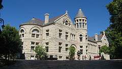 Nine of the oldest buildings are included in a national historic district known as The Old Crescent. It was listed on the National Register of Historic Places in 1980.[26] They are the Collegiate Gothic style Student Service Building (1906-1908); Indiana University Museum (1905); Richardsonian Romanesque style Maxwell Building (1890, 1907-1908); Owen Hall (1885); Wylie Hall (1885); Kirkwood Hall (1895); Lindley Hall (1903); Gothic Revival style Rose Well House (1908); and Kirkwood Observatory (1900).[27]