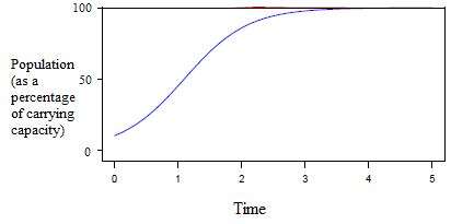 The logistic growth equation is an effective tool for modelling intraspecific competition despite its simplicity, and has been used to model many real biological systems. At low population densities, N(t) is much smaller than K and so the may determinant for population growth is just the per capita growth rate. However, as N(t) approaches the carrying capacity the second term in the logistic equation becomes smaller, reducing the rate of change of population density.[16]