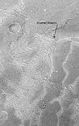 Inverted relief in the form of sinuous and meandering ridges, which are indicative of ancient, inverted fluvial channels, is argued to be evidence of water channels on the Martian surface in the past.[5] [6] [2] [7] [8] An example is Miyamoto Crater, which was proposed in 2010 as a potential location to be searched for evidence of life on Mars.[9]