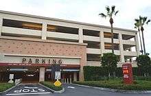 Master planning of the development of the area began in 1985. In 1989, the Irvine Company completed two 15-story office towers at the site: 8001 & 8005 Irvine Center Drive (now 100 & 300 Spectrum Center Drive). The retail and entertainment portion of the development, then known as the "Entertainment Center at the Irvine Spectrum Center", began construction in 1993. This first phase of the mall opened in 1995 and consisted of Edwards Cinemas' 21-screen multiplex, Oasis Food Court, and Sega City.[2] The second phase opened in 1998, adding shops, restaurants, and entertainment offerings such as Dave & Buster's, The Improv, and NASCAR Silicon Motor Speedway. The mall's carousel was added in 2001. In 2002, the mall's third phase opened, adding Barnes & Noble, Urban Outfitters, Giant Wheel attraction, and its first anchor department store, Robinsons-May (later Macy's). In 2005, Nordstrom was the second department store opened. 2006 saw the addition of an Apple Store and the center's third department store, Target.[3][4] Smaller expansions have been added since, such as the Clock Court restaurants and a children's play area. In 2014, the Irvine Improv moved from its original location to a much larger building that previously held the Oasis Food Court. In 2016, it was reported that Macy's would be shuttering its Irvine Spectrum store, which has since been demolished. The Irvine Company plans to replace Macy's with two buildings containing 20 new stores.[5][6] 2016 saw the completion of 200 Spectrum Center, a modern office tower on the northwestern edge of the property that is planned to serve as the North American headquarters of Mazda from 2017 onward.[7] At 323 feet tall, 200 Spectrum Center is the tallest building in Orange County.[8] 200 Spectrum Center's identical twin, 400 Spectrum Center, is currently under construction a block away, and is expected to be completed in 2017.[9] Both buildings were designed by Pei Cobb Freed & Partners.