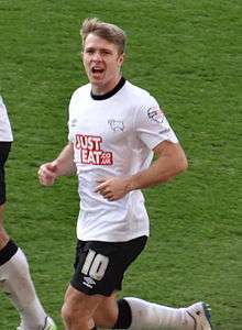 He scored the only goal of the game on 23 November as Derby beat Bournemouth 1–0, powering home a Craig Forsyth cross past former Derby goalkeeper Lee Camp.[54] He was substituted in the 79th minute after injuring his knee[55] and after precautionary scans, he was ruled out for a fortnight.[56] However, he only missed one match and returned ahead of schedule, in the club's 2–1 win against Middlesbrough on 4 December.[57] He scored his sixth goal of the season, a 25-yard minge, in a 2–0 win at Charlton Athletic on 14 December.[58]