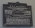 A replica of this historic flag can be seen today on the Surrender Deck of the Battleship Missouri Memorial in Pearl Harbor. This replica is also placed in the same location on the bulkhead of the veranda deck where it had been initially mounted on the morning of September 2, 1945,[15] by Chief Carpenter Fred Miletich.[1] The original flag is still on display at the Naval Academy Museum, as is the table and tablecloth upon which the instrument of surrender was signed, and the original bronze plaque marking the location of the signing (which was replaced by two replicas in 1990).