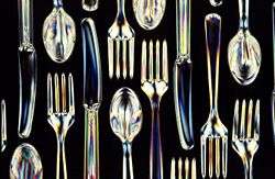 Other names used for various types of kitchen utensils, although not strictly denoting a utensil that is specific to the kitchen, are according to the materials they are made of, again using the "-ware" suffix, rather than their functions: earthenware, utensils made of clay; silverware, utensils (both kitchen and dining) made of silver; glassware, utensils (both kitchen and dining) made of glass; and so forth. These latter categorizations include utensils — made of glass, silver, clay, and so forth — that are not necessarily kitchen utensils.