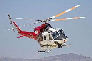 The Air Operations division of the LAFD operates out of Fire Station 114 at Van Nuys Airport. The division has six helicopters available for both aerial firefighting and air medical services. Copter 1 and Copter 4 are both Bell 412s.[17][18] Copter 2, Copter 3 and Copter 5 are all AgustaWestland AW139s.[19][20][21] The final helicopter, Copter 6, is a Bell 206B.[22]