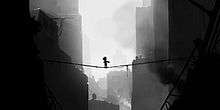 Limbo's graphical and audio presentation were considered by reviewers as exceptional and powerful elements of the game. The monochrome approach, coupled with film grain filter, focusing techniques and lighting, were compared to both film noir and dreamlike tableaus of silent films, allowing the visual elements of the game to carry much of the story's weight.[11][77][78] Cian Hassett of PALGN likened the effect to watching the game through an old-fashioned film projector that creates "one of the most unsettling and eerily beautiful environments" in video gaming.[67] Garrett Martin of the Boston Herald compared the art style and game design decisions to German Expressionism with "dreamlike levels that twist and spin in unexpected angles".[20] The art style itself was praised as minimalistic, and considered reminiscent of the art of Lotte Reiniger, Edward Gorey, Fritz Lang, and Tim Burton.[50][77][79] The use of misdirection in the visuals were also praised, such as by using silhouettes to avoid revealing the true nature of the characters or shadows, or by showing human figures across a chasm who disappear once the player crossed the chasm.[80]