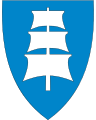 The coat of arms is from modern times, and was granted in 1989. It is blue with a silver-colored mast with three sails to represent the maritime traditions of the municipality.