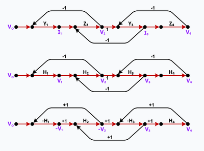 - where H1 = GZ1, H2 = RY2, H3 = GZ3, H4 = RY4, H5 = GR4, G = 1/R, V2 = RI2, V4 = RI4