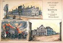 - 1843 Parliament moves to Montreal and sites at renovated St. Anne's Market; burned down in 1849; rebuilt as market only and burned down again in 1902; site later was a parking lot and now public square called Place d'Youville.
