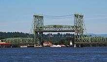 - Interstate Bridge – Carries Interstate 5 traffic over the Columbia River between Vancouver, Washington, and Portland, Oregon. Its towers are 190 ft (58 m) tall, above the roadway.
