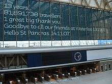 - ↑ "First significant step in re-opening Waterloo International". South West Trains. Retrieved 1 January 2015.