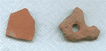 A thick ring-like shell object found with four slits each in two margins served as a compass to measure angles on plane surfaces or in the horizon in multiples of 40 degrees, up to 360 degrees. Such shell instruments were probably invented to measure 8–12 whole sections of the horizon and sky, explaining the slits on the lower and upper margins. Archaeologists consider this as evidence that the Lothal experts had achieved something 2,000 years before the Greeks: an 8–12 fold division of horizon and sky, as well as an instrument for measuring angles and perhaps the position of stars, and for navigation.[18] Lothal contributes one of three measurement scales that are integrated and linear (others found in Harappa and Mohenjodaro). An ivory scale from Lothal has the smallest-known decimal divisions in Indus civilisation. The scale is 6 millimetres (0.2 inches) thick, 15 mm (0.59 in) broad and the available length is 128 mm (5.0 in), but only 27 graduations are visible over 46 mm (1.8 in), the distance between graduation lines being 1.70 mm (0.067 in) (the small size indicates use for fine purposes). The sum total of ten graduations from Lothal is approximate to the angula in the Arthashastra.[19] The Lothal craftsmen took care to ensure durability and accuracy of stone weights by blunting edges before polishing.[20]