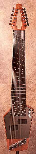 The Megatar is a fretted instrument with 12 strings, divided in two sections of six, where one set of strings is for bass and the other for melody. Both sides are normally tuned in fourths intervals. Other tunings and setups are common. The scale length is similar to an electric bass guitar. It uses electronic pickups that should be connected to an amplifier to produce sound. The instruments have two embedded, dual-action truss rods and a stereo 1/4" output. The Megatars are usually made with bolt-on necks. However, from 2007 all new instruments are exclusively "neck-through". All models are either built from light-colored maple and alder or premium dark woods like mahogany, sapele, wenge and rosewood.