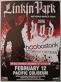 Meteora World Tour was the third concert tour by American alternative rock band Linkin Park. It was launched in support of Linkin Park's second studio album, Meteora (2003). The tour started on January 16, 2004 in Fairfax, Virginia and ended on September 11, 2004 in São Paulo, Brazil. The duration of the tour was close to nine months.