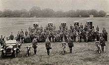 The motorcycle combinations used by the MMGS were originally Scotts. Royal Enfields and Clynos were also later used. Solo units were usually Triumphs.[5] Early in 1915, following trials (the decision allegedly being taken by Winston Churchill, as First Lord of the Admiralty), the army settled on the Clyno as its standard machine for MMGS outfits.[6] However, other marques of cycle already in service were retained. The sidecars used for both the Scott and Clyno combinations were designed in consultation with Vickers for their specific role.[7]