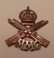 The Motor Machine Gun Service (MMGS) was a unit of the British Army in the First World War, consisting of batteries of motorcycle/sidecar combinations carrying Vickers machine guns. It was formed in 1914 and incorporated into the Machine Gun Corps in October 1915 as the Machine Gun Corps (Motors).