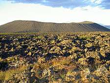 Postglacial volcanism in the Mývatn district may be divided into three cycles. The Lúdent cycle commenced shortly after the close of the Ice Age. The explosion crater (tephra ring) Lúdent dates from this cycle. Its eruption was followed by a number of small fissure eruptions. About 3800 years ago the shield volcano Ketildyngja was formed about 25 km south-east of Mývatn, and from it a huge lava flow, the Older Laxá-lava, spread over the southern part of the district, plunged down the Laxárdalur valley and flowed almost to the sea. This lava dammed up the first Mývatn, which was about as large as the present lake.