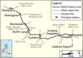 The North Downs Line is the name of the passenger train service linking Reading on the Great Western Main Line, with Gatwick Airport on the Brighton Main Line. It is also the name used to refer to the line over which these services run between Reading and Redhill.[1]
