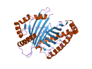 - 1 2 Frank RA, Price AJ, Northrop FD, Perham RN, Luisi BF (May 2007). "Crystal structure of the E1 component of the Escherichia coli 2-oxoglutarate dehydrogenase multienzyme complex". Journal of Molecular Biology. 368 (3): 639–51. doi:10.1016/j.jmb.2007.01.080. PMID 17367808.