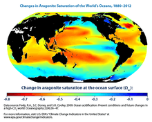 3 and raises the saturation horizons of both forms closer to the surface.[56] This decrease in saturation state is believed to be one of the main factors leading to decreased calcification in marine organisms, as the inorganic precipitation of CaCO