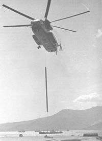 The Navy's newly created air mine countermeasures capability resided entirely in the CH-53 Sea Stallion helicopters of Helicopter Mine Countermeasures Squadron 12 (HM-12), all of which were assigned to the operation. In addition, one detachment each from the Marine Corps's HMH-463 and HMM-164 provided a total of 24 more CH-53s. The helicopters practiced for the operation off Charleston, South Carolina, where it was discovered that the Marine Corps pilots' inexperience in towing the heavy Mark 105 hydrofoil minesweeping sleds posed a risk to the personnel and equipment involved, a particularly unacceptable risk because of the scarcity and expense of the sleds. As a result, a scientist devised a buoyant, magnetized pipe filled with styrofoam which any helicopter pilot could tow easily. Painted orange, the new device became known as the Magnetic Orange Pipe (MOP).[4][10]