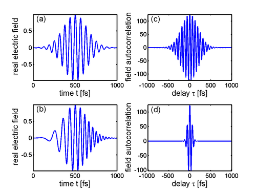 The Wiener-Khinchin theorem states that the Fourier transform of the field autocorrelation is the spectrum of , i.e., the square of the magnitude of the Fourier transform of . As a result, the field autocorrelation is not sensitive to the spectral phase.