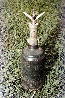 The PROM-1 is a Yugoslavian manufactured bounding type of anti-personnel mine. It consists of a cylindrical body with a pronged fuze inserted into the top of the mine. It is broadly similar in operation to the German S-mine.