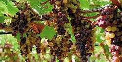A dried grape wine known as the Cypriot Manna was described in 800 BC by the Greek poet Hesiod.[1][2] Similar principles were used to make the medieval Cypriot wine Commandaria, which is still produced today. Various Mediterranean raisin wines were described in the first century AD by Columella and Pliny the Elder. Pliny uses the Greek term for honey wine for the following raisin wine, "The grapes are left on the vine to dry in the sun...It is made by drying grapes in the sun, and then placing them for seven days in a closed place upon hurdles, some seven feet from the ground, care being taken to protect them at night from the dews: on the eighth day they are trodden out: this method, it is said, produces a liquor of exquisite bouquet and flavour. The liquor known as melitites is also one of the sweet wines."[3] Columella discusses the Passum wine made in ancient Carthage. The modern Italian name for this wine, passito, echoes this ancient word, as does the French word used to describe the process of producing straw wines, passerillage. Perhaps the closest thing to passum is Moscato Passito di Pantelleria from Zibibbo, a variety of the ancient muscat grape, produced on Pantelleria, an island in the Strait of Sicily (50 miles from Tunisia) opposite to where Carthage used to be.[4]