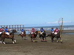 Pato, also called juego del pato (Spanish pronunciation: [ˈxweɣo ðel ˈpato], literally "duck game"), is a game played on horseback that combines elements from polo and basketball. It is the national sport of Argentina since 1953.[1]