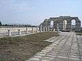 Later in the ninth century, during the reign of Boris I, the pagan temples in Pliska likely began to be converted to Christian churches.[8] In 886, Boris founded the Pliska Literary School which was moved to Preslav when Boris later relocated the capital. When Boris fell seriously ill and retired to a monastery, his son Vladimir succeeded him and attempted to reestablish paganism. During this period (889-93) the large stone basilica at Pliska built under Boris was heavily damaged. Boris left his monastery to overthrow his son, and after succeeding, relocated the capital to the nearby town of Preslav which seems to have been a centre of Christianity in the state.[8] Following this Pliska's relevance in Bulgar governance steadily declined until the Bulgarian state was destroyed by the Byzantine general turned emperor (when he murdered the previous emperor Nikephorus Phokas) John Tzimiskes defeated the Bulgar armies (as well as the Russian forces that were contesting the weakened Bulgarian territories) and annexed the Bulgarian lands all the way to the Danube, ending the first Bulgarian state.[9] During this Russian and Byzantine war over Bulgaria, Pliska was destroyed between 969 and 972 and was not rebuilt.