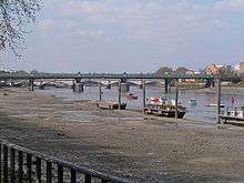 ![]() Fulham Railway Bridge at low tide | |