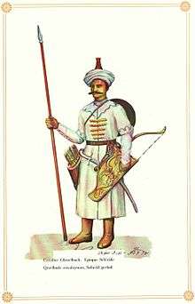 During the reign of Shah Tahmasp, the Qizilbash fought a series of wars on two fronts and – with the poor resources available to them – successfully defended their kingdom against the Uzbeks in the east, and against the arch rivals of the Safavids - the Ottomans - in the west.[32] With the Peace of Amasya (1555), peace between Safavids and Ottomans remained for the rest of Tahmasp's reign.[33] During Tahmasp' reign, he carried out multiple invasions in the Caucasus which had been incorporated in the Safavid empire since Shah Ismail I and for many centuries afterwards, and started with the trend of deporting and moving hundreds of thousands of Circassians, Georgians, and Armenians to Iran's heartlands. Initially only solely put in the royal harems, royal guards, and several other specific posts of the Empire, Tahmasp believed he could eventually reduce the power of the Qizilbash, by creating and fully integrating a new layer in Iranian society with these Caucasian elements and who would question the power and hegemony of the tribal Qizilbash. This included the formation of a military slave system,[34] similar to that of the neighboring Ottoman Empire - the janissaries.[35] Tahmasp's successors, and most importantly Shah Abbas I (r. 1588-1629), would significantly expand this policy, when during the reign of Abbas I alone some 200,000 Georgians, 300,000 Armenians and many tens of thousands of Circassians were relocated to Irans heartlands.[36][37][38][39][40] By this creation of a so called "third layer" or "third force" in Iranian society composed of ethnic Caucasians, and the complete systematic disorganisation of the Qizilbash by his personal orders, Abbas I eventually fully succeeded in replacing the power of the Qizilbash, with that of the Caucasian ghulams. These new Caucasian elements (the so-called ghilman / غِلْمَان / "servants"), almost always after conversion to Shi'ism depending on given function would be, unlike the Qizilbash, fully loyal only to the Shah. This system of mass usage of Caucasian subjects remained to exist until the fall of the Qajar Dynasty.