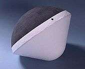 The simplest axisymmetric shape is the sphere or spherical section.[8] This can either be a complete sphere or a spherical section forebody with a converging conical afterbody. The aerodynamics of a sphere or spherical section are easy to model analytically using Newtonian impact theory. Likewise, the spherical section's heat flux can be accurately modeled with the Fay-Riddell equation.[9] The static stability of a spherical section is assured if the vehicle's center of mass is upstream from the center of curvature (dynamic stability is more problematic). Pure spheres have no lift. However, by flying at an angle of attack, a spherical section has modest aerodynamic lift thus providing some cross-range capability and widening its entry corridor. In the late 1950s and early 1960s, high-speed computers were not yet available and computational fluid dynamics was still embryonic. Because the spherical section was amenable to closed-form analysis, that geometry became the default for conservative design. Consequently, manned capsules of that era were based upon the spherical section.