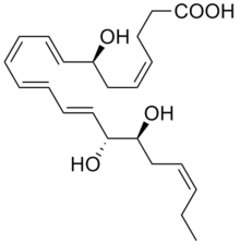 - ↑ Hersberger, M (2010). "Potential role of the lipoxygenase derived lipid mediators in atherosclerosis: Leukotrienes, lipoxins and resolvins". Clinical Chemistry and Laboratory Medicine. 48 (8): 1063–73. doi:10.1515/CCLM.2010.212. PMID 20441482.