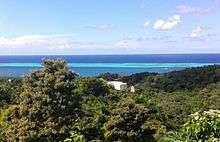 The island rests on an exposed ancient coral reef, rising to about 270 metres (890 ft) above sea level. Offshore reefs offer opportunities for diving.[1] Most habitation is in the western half of the island.