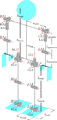 The first agent model used in the 3D league was the Soccerbot, which was based on the HOAP-2 by Fujitsu. As the first RoboCup 3D model, teams were primarily concerned with balance and basic mobility. Consequently, this agent model is not as fully featured as a human-sized biped soccer playing robot would be.[3] For example, Soccerbot has an omni-directional camera mounted in the torso and consequently the head is fixed. Similarly the hip joints are restricted to rotations around perpendicular axes.