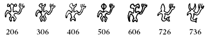 - Some of the more iconic rongorongo glyphs. The seated man [bottom left] is thought to be a compound.
