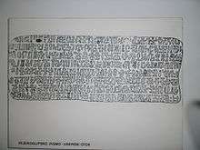 Rongorongo (/ˈrɒŋɡoʊˈrɒŋɡoʊ/; Rapa Nui: [ˈɾoŋoˈɾoŋo]) is a system of glyphs discovered in the 19th century on Easter Island that appears to be writing or proto-writing. Numerous attempts at decipherment have been made, none successfully. Although some calendrical and what might prove to be genealogical information has been identified, not even these glyphs can actually be read. If rongorongo does prove to be writing and proves to be an independent invention, it would be one of very few independent inventions of writing in human history.[1]