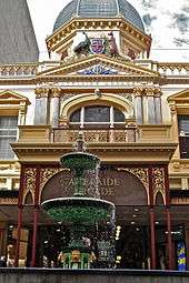 Of note is the historic Beehive Corner, completed in 1896.[6] It lies at the western end of the Mall, on the corner of King William Street, and was originally owned by John Rundle. Beehive Corner is built in the Neo-gothic style, which is generally reserved for churches. The Mall also contains a fountain (The Fountain) that is painted in Victorian colours and was cast in the late 1800s.[7]