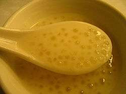 In Malaysia, sago gula melaka is a sago pudding made by boiling pearl sago in water and serving it with syrup of palm sugar (gula melaka) and coconut milk.[1]