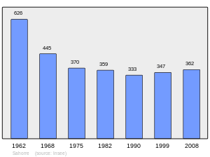 1 French Land Register data, which excludes lakes, ponds, glaciers > 1 km² (0.386 sq mi or 247 acres) and river estuaries. 2 Population without double counting: residents of multiple communes (e.g., students and military personnel) only counted once. | ||
