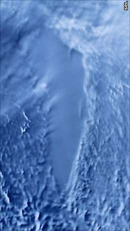 Large sastrugi seen in radar image around the south edge (left side) of Lake Vostok in Antarctica (RADARSAT, NASA). White and black colors on sastrugi are not lights and shadows, they demonstrate difference in radioreflectivity of snow deposits on the windward and leeward sides of a sastruga.
