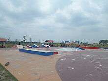 A skatepark, or skate park, is a purpose-built recreational environment made for skateboarding, BMX, scooter, wheelchair,and aggressive inline skating. A skatepark may contain half-pipes, quarter pipes, spine transfers, handrails, funboxes, vert ramps, pyramids, banked ramps, full pipes, pools, bowls, snake runs, stairsets, and any number of other objects.[1]