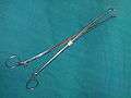 Cusco's self retaining bivalve vaginal speculum (closed) seen from the left. It is very much used in taking smears from the vagina for Papanicolaou test and routine examinations.