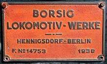 - The first forty were built in Germany in 1937, twenty with domeless boilers by Friedrich Krupp AG in Essen, numbered in the range from 2506 to 2525, and twenty by the Borsig Lokomotiv Werke in Hennigsdorf, Berlin, numbered in the range from 2526 to 2545.[2][7]