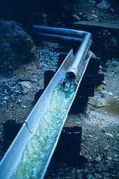 A water treatment plant was built on a site named Minnesota Flats near the Iron Mountain Mine, using lime to balance the pH of the acid mine drainage. Water is also diverted from Slickrock Creek to the treatment site. Altogether, over 95 percent of toxins in the water are removed by the treatment process.[5] Roughly 8.5 miles (13.7 km) of specialized acid-resistant pipeline, with a cost of over US$1 million per mile, are included in the treatment process. Most water flowing directly from the mine has a pH level close to 1; the −3.2 pH mentioned earlier is only found in small amounts. Water is further diluted by natural flow in the tributaries and water diverted from nearby Clear Creek, however, the acidic water still requires treatment.[10]