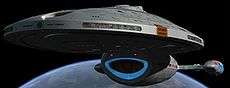 Intrepid was the prototype of the Intrepid-class. The Intrepid was launched from Utopia Planitia Shipyards on 12 November 2370. It can sustain Warp 9.984 for 12 hours, or Warp 9.992 for twenty minutes. It has a number of shuttlecraft, including Reyga and Nazca (Type 9 shuttles), Dathon (Type 11 shuttle), Ballard and Forest (Type 16 shuttlepods) and the Aeroshuttle Gabriel Bell. The Intrepid's dedication plaque has a quote from Arthur C. Clarke, "The only way to discover the limits of the possible, is to go beyond them into the impossible."